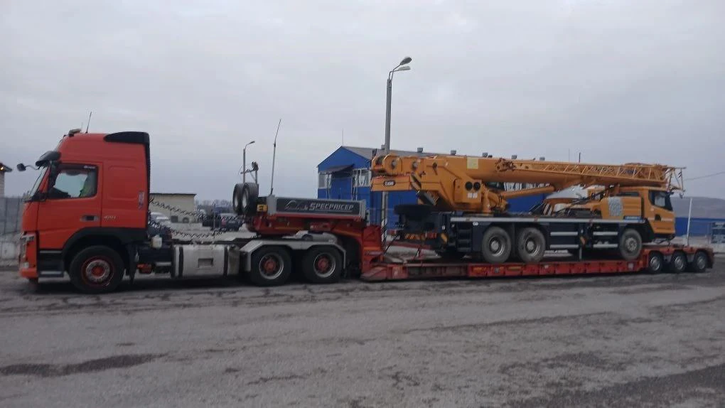 Вес крана составил 31 тонну, доставка выполнена на низкорамном трале с выполнением всех требований законодательства.